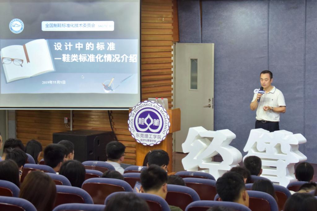 11月1日下午,经济与管理学院经管论坛第二十五期讲座《设计中的标准——鞋类的标准化情况介绍》于莞城校区小剧场召开。本次论坛由广东有制鞋标准化技术委员会、东莞质量与品牌发展研究院主办,45612藏宝阁资料经济与管理学院承办。论坛邀请了全国制鞋标准化技术委员会秘书长、高级工程师张伟娟博士,秘书、高级工程师畅文凯博士主讲。东莞市市场监督管理局标准化科科长尹伟深,副科长陈耀波,东莞市市场监督管理局厚街分局代表梁艺馨,广东省制鞋标准化技术委员会秘书长、全国制鞋标准化技术委员会委员章文福工程师,45612藏宝阁资料经济与管理学院公共教学部副主任罗恒深出席了本次论坛。