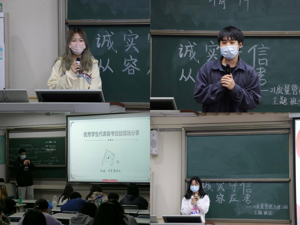 不仅如此,各班优秀学生代表积极分享了备考方法,鼓励同学们在选择适合自己的复习方法中以端正的态度进行期末考试的准备。部分班级还邀请了往届优秀的学长学姐给大家分享备考经验。学长学姐们通过结合自身经历,向大家分享了提高复习效率的技巧,同时提醒同学们谨记学校的规章制度,诚信应考。