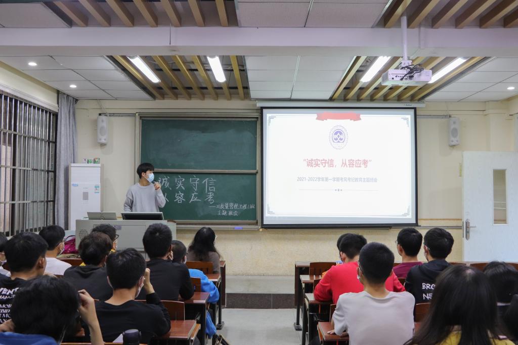 为严肃考风考纪,加强同学们诚信应考的意识,经管学院非毕业班年级,12月初陆续开展了“诚实守信,从容应考”主题班会。主题班会由各班班主任主持。