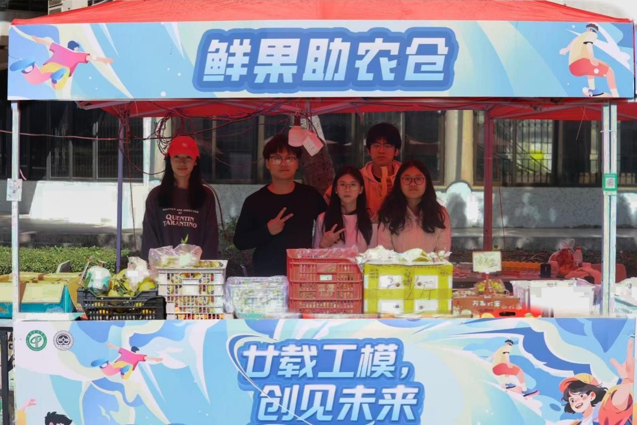 活动现场设立三大特色展区,构建实践育人与社会服务深度融合的立体格局,其中东莞市残疾人托养中心公益展位,展出学员们亲手制作的精美手工艺品吸引了众多师生驻足欣赏与交流,温馨互动构筑校园暖心图景;“百千万工程”助农专区,集中展销来自对口帮扶区的优质农副产品,师生踊跃认购,以切实的消费帮扶赋能乡村振兴;“同心筑梦 民族团结”展区,通过丰富多彩的民族特色文化展示与互动体验,促进不同民族师生间的理解与交融,搭建起民族团结的桥梁。
