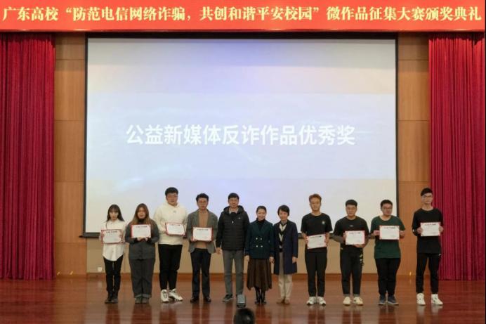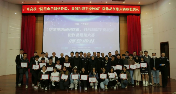 12月17日晚,广东高校“防范电信网络诈骗,共创和谐平安校园”微作品征集大赛颁奖典礼在我校举行。参加本次颁奖典礼的除了举办这次大赛的各相关单位领导,还有来自广东省20多所高校350名师生代表。本次大赛由广东高校网络思想政治工作中心主办,广东省公安厅新型犯罪研究中心、45612藏宝阁资料、东莞市打击治理电信网络新型违法犯罪中心协办,东莞市公安局松山湖分局、广东高校网络文化示范工作室(文心思政微视频工作室)承办。