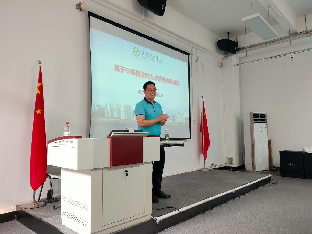 教务处副处长廖文波为与会人员开展一流专业建设主题培训,主要介绍了以OBE理念为主的人才培育理念,围绕人才培养方案设计、教学大纲设计、课程建设与课程目标达成度分析等问题,为教师阐明了“以学生为中心“导向的落地路径,明确”培养目标是确定毕业要求的依据,而毕业要求是达成培养目标的支撑“,并提出了”反向设计,正向实施,持续改进“的人才培养方案闭环式管理模式。对于人才培养方案的修订过程,廖文波指出,应广泛开展需求调查,明确人才培养目标,清晰学生毕业要求,理清人才培养标准,理顺课程支撑结构,循序渐进地展开调研、设计、论证和调整完善,将人才培养工作作为专业建设的重中之重。