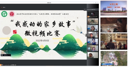 4月6日举行了“我感动的家乡故事”微视频比赛的线上评审活动,最终六个作品脱颖而出,斩获一二三等奖。比赛活动极大地鼓励和带动了同学们将视野回归到自己的家乡当中,使同学们重新认识和感恩自己的家乡,以赤子之心去感受家乡浓浓的乡土情怀和时代变迁中的家乡变化,用光和影来向大众讲好家乡故事。