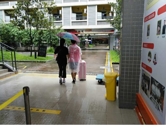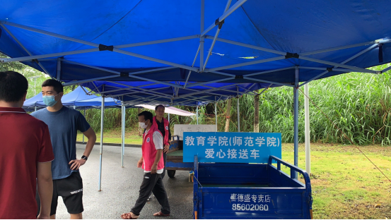 在学生宿舍区开展接送服务的教育学院(师范学院)的老师们