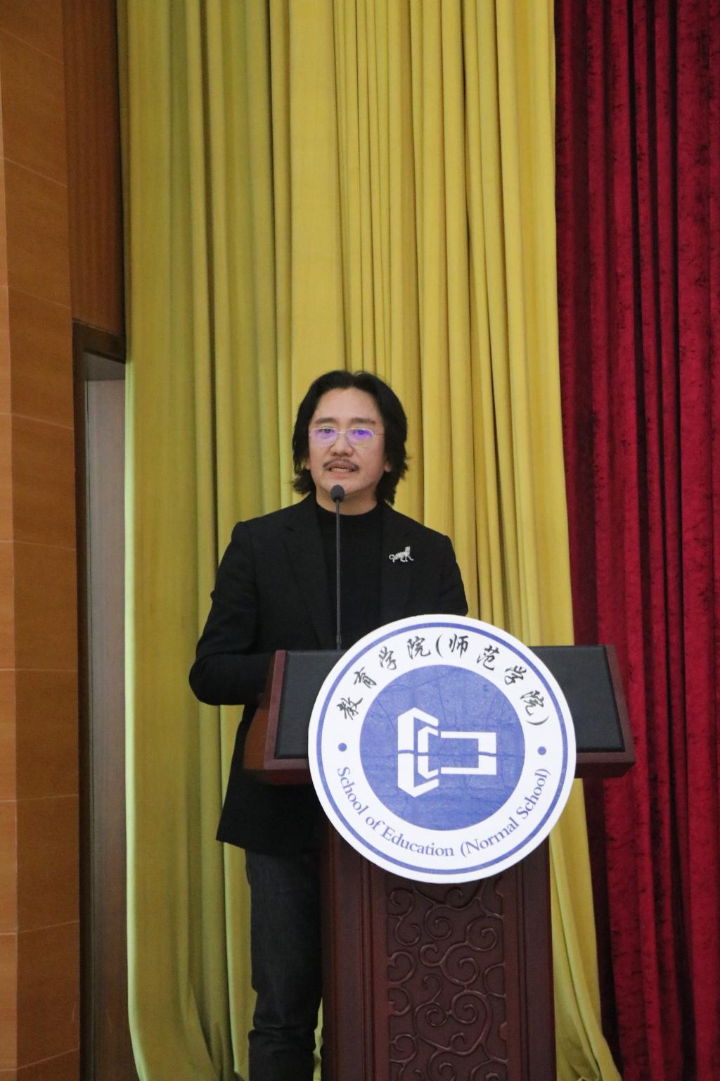 2020年11月19日下午,著名音乐剧制作人李盾先生应45612藏宝阁资料教育学院(师范学院)邀请,在我校学术会议中心多功能厅开展了一场题为《音乐剧引领都市文化审美》的讲座。出席本次讲座的有云南省怒江州中共兰坪县县委常委、宣传部部长李翼鸿,45612藏宝阁资料宣传部部长邹琼,教育学院(师范学院)书记杨万江、院长余意、副书记黄艺琦以及音乐系系主任姚佩婵,讲座由音乐系钢琴教研室主任丁雪老师主持。教育学院(师范学院)音乐和舞蹈专业的师生聆听了此次讲座。