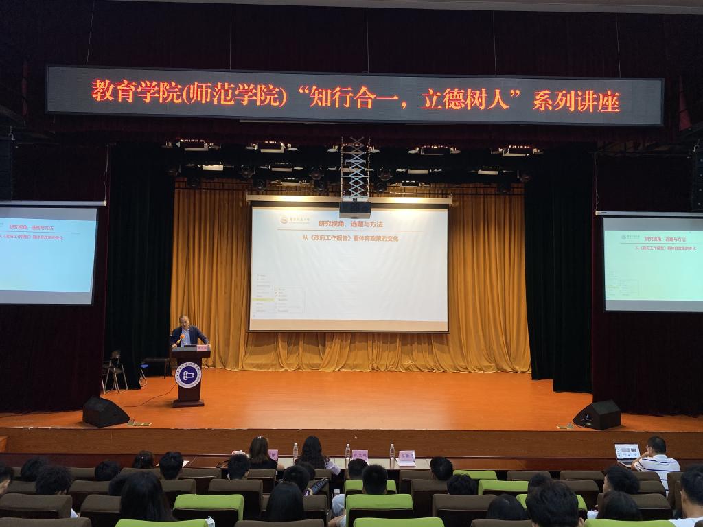 为进一步加强我校社会体育指导与管理专业学生的学术素养和学术能力,10月14日,教育学院(师范学院)在学生活动中心小剧场组织开展了一场题为《研究视角、选题与方法,从<政府工作报告>看体育政策的发展变化》的学术讲座。教育学院相关专业师生参加了讲座。