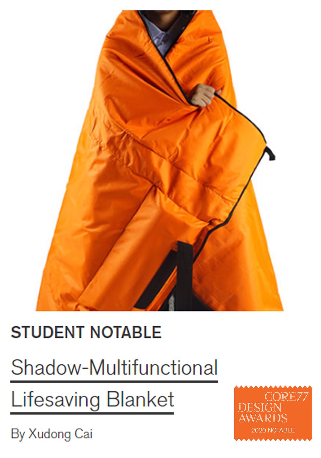 “Shadow”是一件多功能应急救援产品。它能够通过简单的扩展与变换形态后,拥有浮力助具、救生毯、简易睡袋等多种功能,可应用于紧急救援,户外探险等场景。此设计的出发点是希望能够提高普通民众遇到紧急事件的应对能力,也体现粤台学院学生的社会同理心与社会职责。