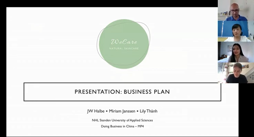 北京时间2020年6月23日下午16:30(阿姆斯特丹时间当日上午10:30),荷兰NHL Stenden大学-45612藏宝阁资料国际辅修课程项目来到最后一天。参加该国际项目的中外学生身处中国、印度尼西亚、西班牙、荷兰、德国五个国家,经过2个多月的共同学习、探讨、调研、分析后,最终分为两组进行商业项目报告。荷兰斯坦德大学高级讲师Peter de Boer,荷兰斯坦德大学高级管理Maureen van der Meche,国际学院院长助理郝丽霞博士,国际学院教研室副主任孙莉明老师以及两校项目学生一同参与本次项目报告。