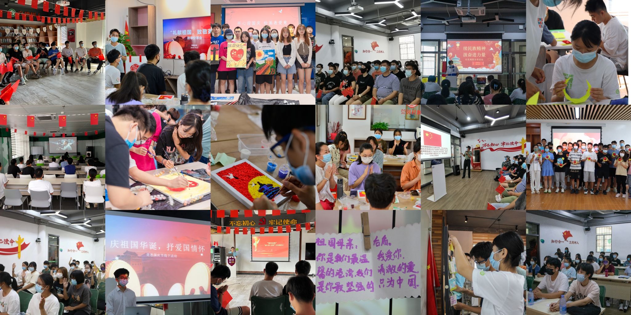 在松山湖校区,“礼献祖国,致敬英雄”“金秋迎国庆,故事颂英雄——致敬最可爱的人”“与国庆华诞,携手演华章”等主题故事分享会讲述了许多红色故事,引导社区师生传承红色基因,在精神洗礼中砥砺品格;“观红色电影,忆峥嵘岁月”“莞华有约之那年那人那事”等红色观影活动带领师生感受新中国发展的伟大征程;“纸艺迎国庆,我心献祖国”“开心迎国庆,绘画表爱意”和“手工迎国庆,装点我的爱心国”等手工艺术活动,寓教于乐,引导师生将爱国情融入中国优秀传统文化的传承中。