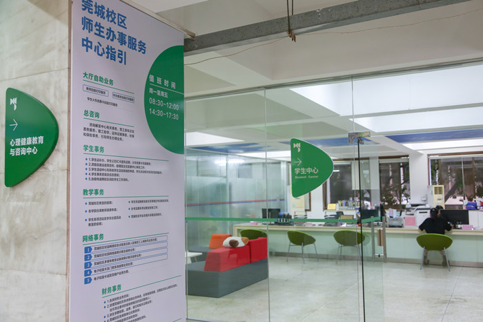 莞城校区师生办事服务中心是由莞城校区管委会和党委学研工作部、学生处牵头建设,中心设在莞城校区4号楼203室。中心坚持把群众满意作为出发点和落脚点,完善管理制度、优化办事流程、加强精细管理角度出发,整合学校多个部门资源,着力解决提交材料的重复性、行政部门之间缺乏信息共享等方面存在的瓶颈问题,目前已有学工部、教务处、财务处、网信办以及后勤办等部门进驻,为师生提供相关业务的一站式服务。