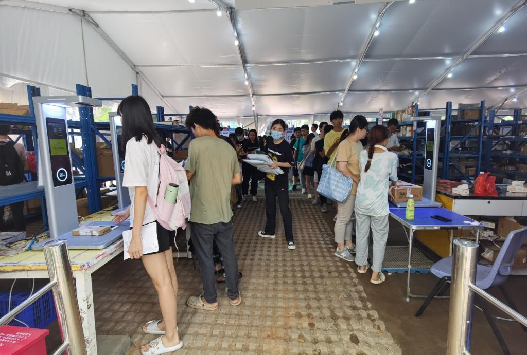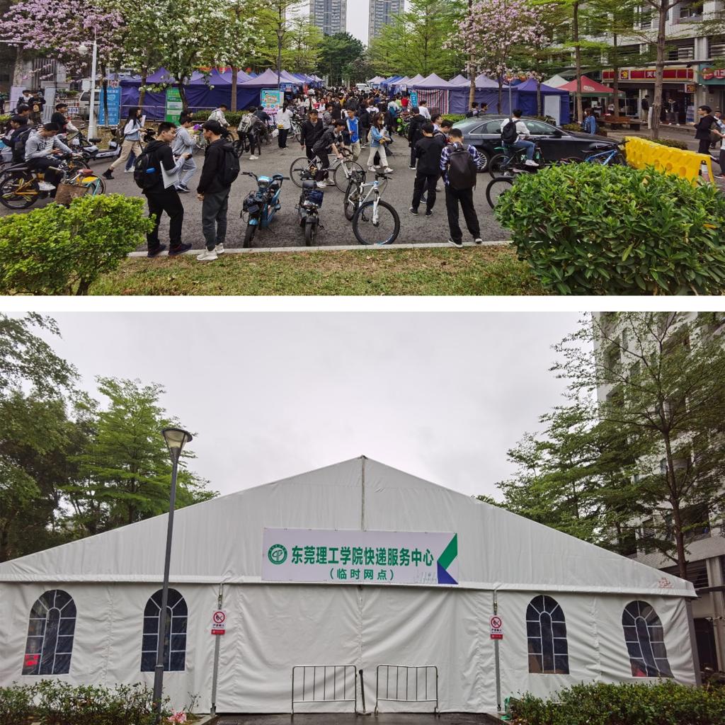 为筑牢校园疫情防控安全防线,学校松山湖校区的快递驿站临时设置在北门的空地上,但此前由于基础设施不完善,采光排水设施不全,导致师生的使用感受并不好。为解决快递最后一百米的难题,学校后勤管理办公室积极调研、不断探索,搜集师生意见并优化快递服务模式,从场地设置、领取方式以及安全管理三个方面进行升级改造,让师生的包裹有了更舒适的“新家”。