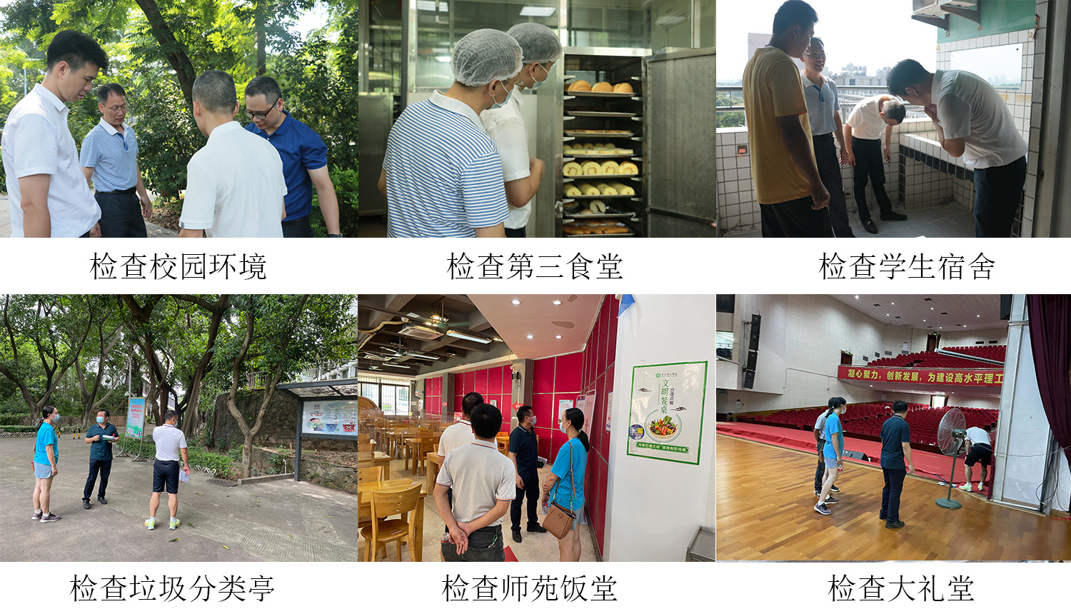 为进一步确保新学期各项工作有序进行,8月24日,后勤班子在两校区检查后勤开学准备工作,依次检查机电房、教学楼、学生宿舍、食堂、图书馆、医务所、守正园、礼堂以及行政楼等,不放过任何一个角落,指出存在的问题,并要求限期落实整改措施。
