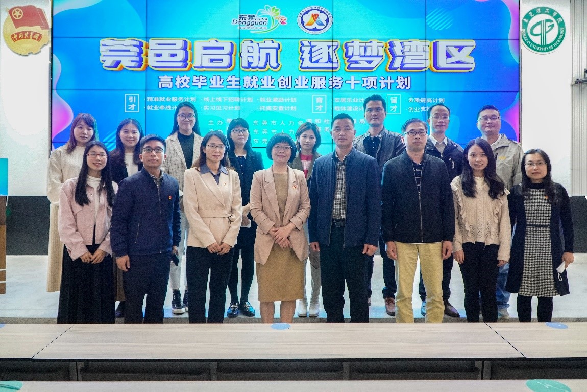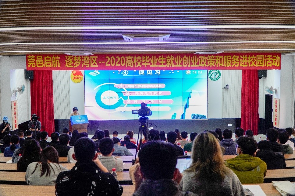 我校历届毕业生中,每届有近8成毕业生留莞就业创业,为让同学们熟悉掌握并用好用活东莞市最新就业创业服务政策,享受政策红利,助力毕业生顺利就业,12月10日,由东莞市人力资源和社会保障局主办,我校协办的“莞邑启航 逐梦湾区”2020高校毕业生就业创业政策和服务进校园首场宣讲活动在我校松山湖校区学生中心举行,知东莞APP同步进行线上直播。东莞市人力资源和社会保障局副局长汤丽华,学校就业中心老师、各二级学院就业工作辅导员、就业指导课任课教师及2021届毕业生代表等参加培训。我校三名往届优秀校友现场分享就业创业经验。