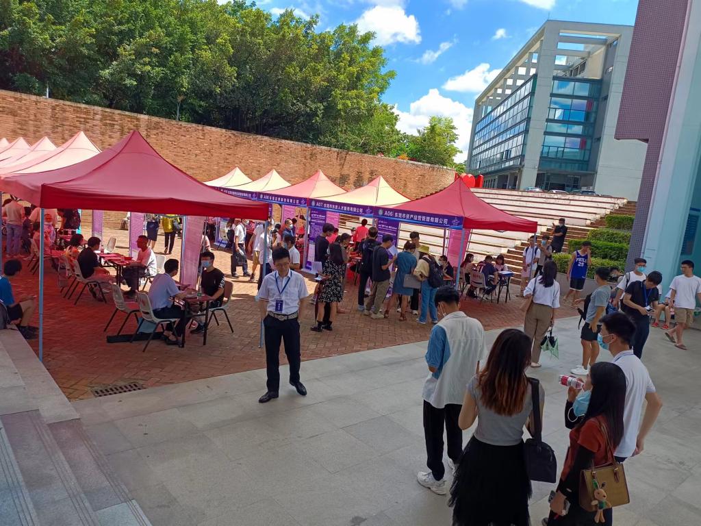 招聘会现场,东莞交投集团、东莞水务集团、东莞证券、东莞港务、东莞能源等19家市属国有企业及下属公司携200多个各类型岗位参与活动。现场秩序井然,同学们积极签到、报名、投递简历参与面试。不少岗位获得同学们青睐,面试现场排起了长队。“我面试的是企业网络工程的岗位,和面试官的交流也很顺利。今天招聘会上都是优质的岗位,希望我能把握住这次机会。”“我是来自法社学院的,同学约好一起包车过来,之前在学校就业信息网投递了简历,比较意向东资实业公司的招商运营岗”,现场求职同学与就业中心老师沟通交流时谈到。就业中心老师表示,下来,学校将持续开展“离校不离心 服务不断线”行动,需要帮扶的同学,可与学院就业工作辅导员老师和中心老师,提供一对一简历诊断和精准推荐。