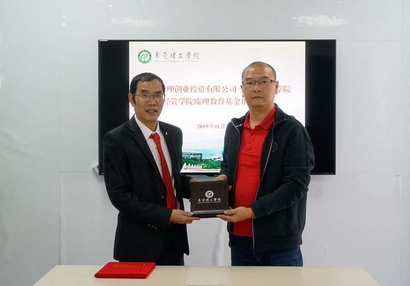 11月21日,经管学院校友企业——东莞臻理创业投资有限公司,向我校经济与管理学院捐赠50万元,用于设立“经管学院臻理教育基金”。该基金主要用于支持经管学院学生培养、师资建设,推动产学研项目合作及学院发展等方面。捐赠仪式在学校松山湖校区举行,东莞臻理创业投资有限公司总经理赖庆强、校基金会办公室主任崔学海及经管学院副院长刘川等出席了捐赠仪式。