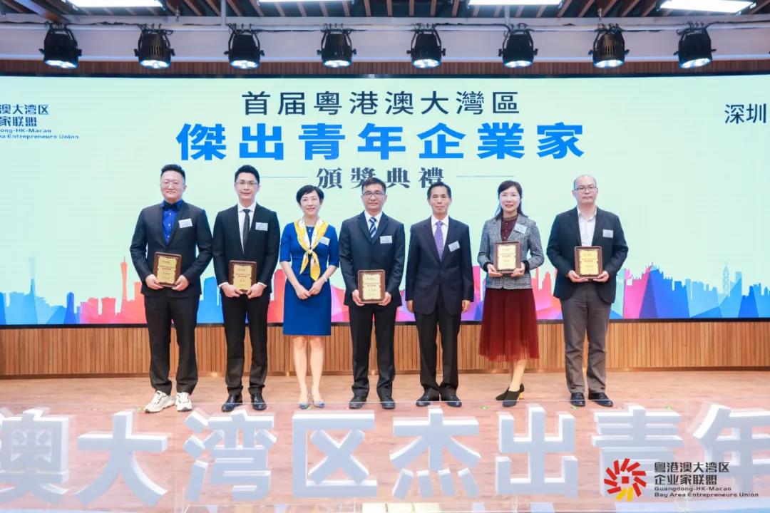 尹创铸(左四)荣获首届粤港澳大湾区杰出青年企业家最佳创业奖
