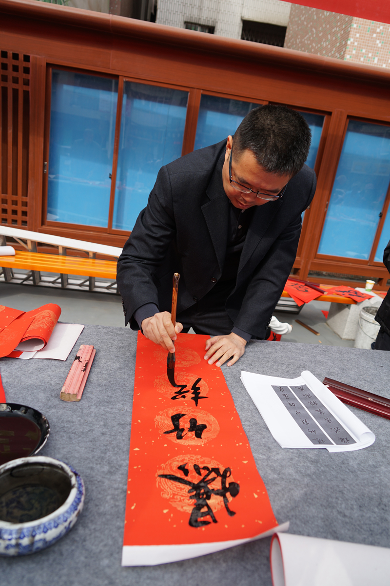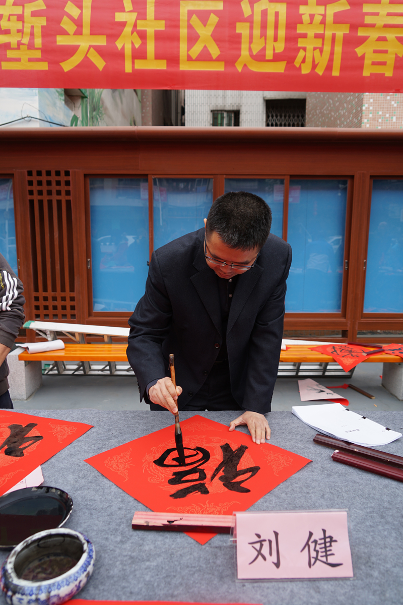 迎新春送春联,墨香祝福暖心田,为迎接2020年新春佳节的到来,营造春节喜庆祥和的氛围,1月13日上午,莞城校区与堑头社区携手举办迎新春送祝福赠春联活动。莞城校区党工委书记、管委会常务副主任刘健,堑头社区党工委书记钟林辉,邀请东莞市的书法家和书法爱好者为社区居民免费书写春联和福字,喜迎新春佳节,为群众送上新春佳节的美好祝福。