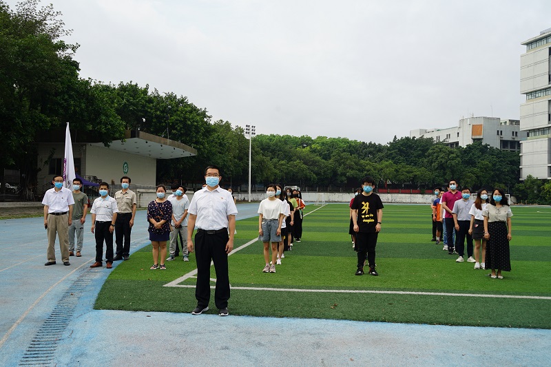 5月25日早上7:30,莞城校区举行了本学期学生返校后首次升旗仪式。莞城校区党工委书记、管委会常务副主任刘健,管委会副主任彭日新,粤台学院、法社学院、经管学院相关负责人及部分师生参加升旗仪式。这是疫情期间我校学生返校后的首次升旗仪式,广大师生满怀信心和对未来的憧憬,以饱满的精神状态回到久违的校园。