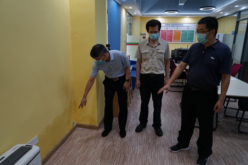 刘健一行对校区内水体、堤围、围墙、工地、宿舍、楼顶、树木、建筑外墙、户外广告标识等进行实地全面排查,重点检查低洼地区、排水系统、电力设备、网络通信设备等关键部位和要害环节,发现问题现场指导整改,防止发生意外。