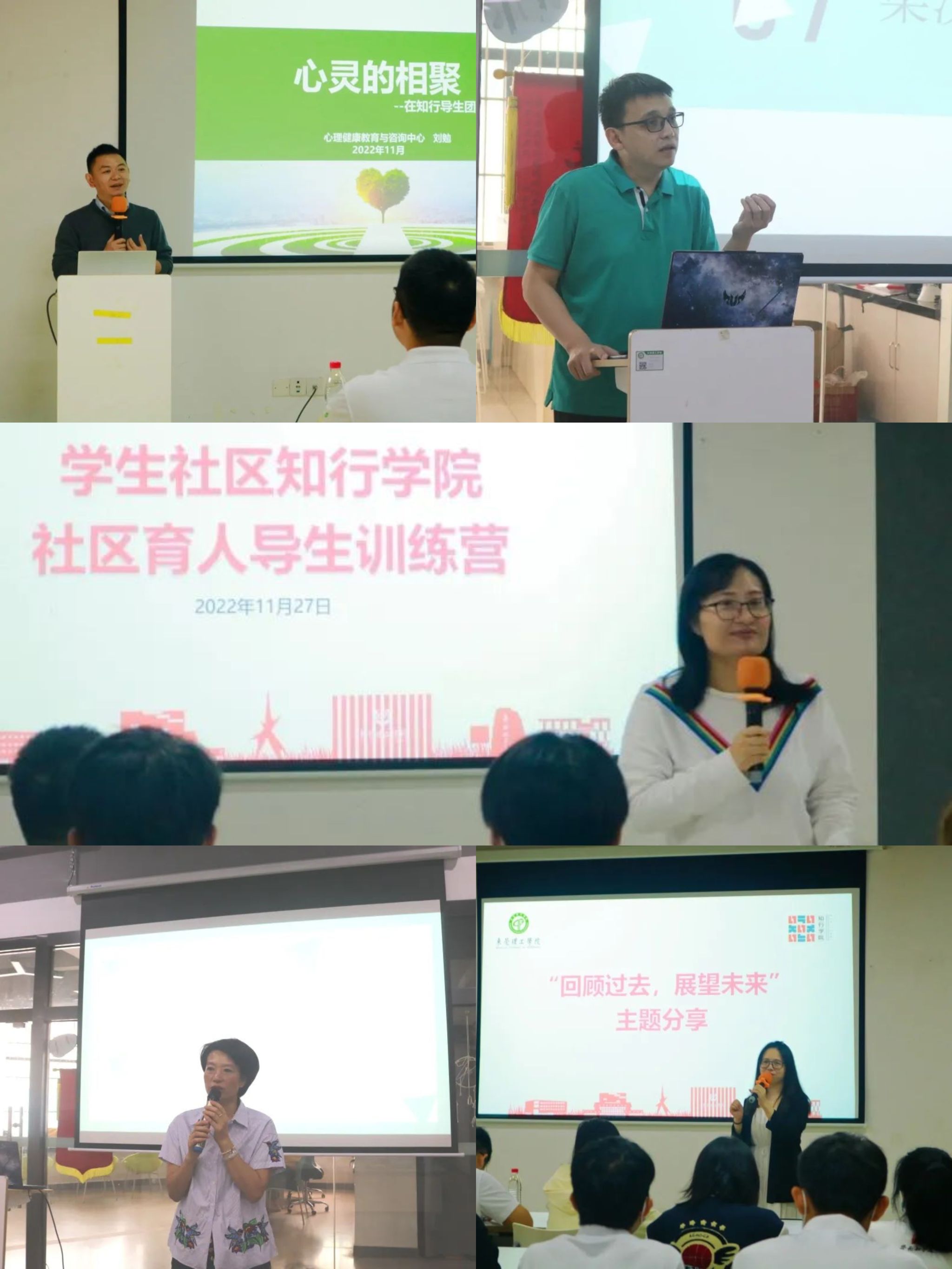 11月27日上午,社区育人导生训练营主题微课活动在松山湖校区学生中心A110举行。我校团委书记、学生社区知行学院执行院长劳丹,心理中心、知行学院相关老师,社区育人学生工作办公室成员以及知行学院团学成员参与。活动中,学生社区知行学院执行院长劳丹老师通过内容分享,勉励同学们不断加强学习,提升服务能力,提高业务水平,不断提高学生组织的工作,在帮助和服务同学的过程中,知行合一,进步成长。心理中心刘勉老师从专业心理学的角度,以“心灵的相聚——在知行导生团体中探索成长”为主题,向同学们介绍了团体的特点、作用、困难,以及如何实践。邓敏君老师以“回望过去,展望未来”为主题做分享,为同学们介绍了团队发展背景、过去几年团队工作成效、定位和工作目标。莞城校区的活动中,知行学院综合办公室主任梁汉钧老师向同学们详细介绍了知行学院基本情况,勉励同学们在学习生活中做到知行合一,用心学习。人文中心吴云开老师则从团队合作的角度切入,告诉同学们团队合作的重要性。