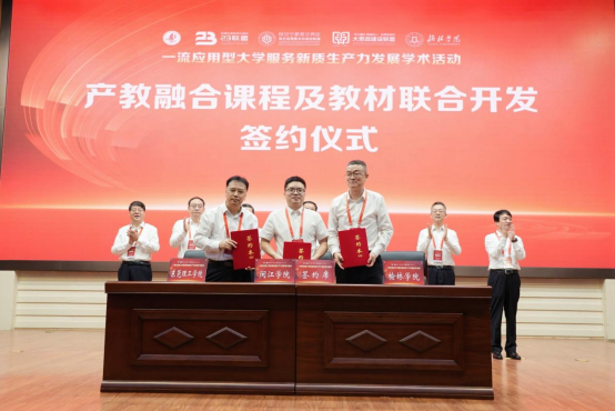 我校党委副书记、校长马宏伟受邀参加会议,在大会开幕式上,代表学校与榆林学院校长康伟、闽江学院副校长陈兴明共同签署《产教融合课程及教材联合开发协议》。该联合行动致力于开发一系列数智技术赋能的课程、教材,旨在充分发挥三所高校在学科专业建设、人才培养水平、服务地方能力等方面的特色和优势,推进跨地域之间高校的广泛交流与深度合作,全面落实立德树人根本任务,协力培养创新型、复合型、应用型一流人才,展现高校在发展新质生产力中的更大作为。