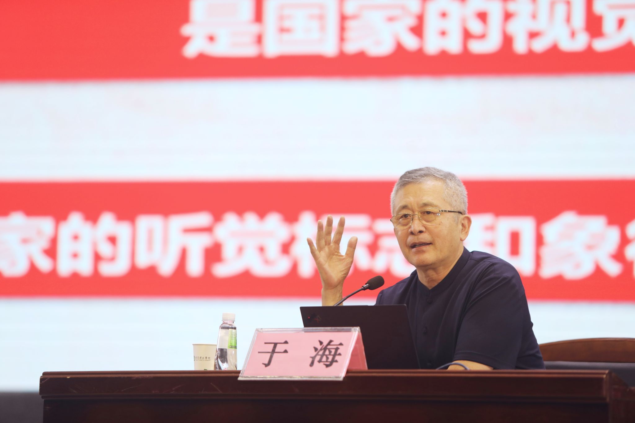 在专题报告环节,于海从“国歌的概述”“《义勇军进行曲》的发展历程”“国歌崇高神圣、至高无上”“国歌是家国情怀教育的生动教材”“我们的国歌是最好的国歌”五个方面进行分享。他系统介绍了国歌的相关知识,深刻分析了《义勇军进行曲》的词曲特点、艺术魅力和精神内涵,生动讲述了国歌背后的动人故事,并为大家细致解读了《国歌法》中的关键内容。