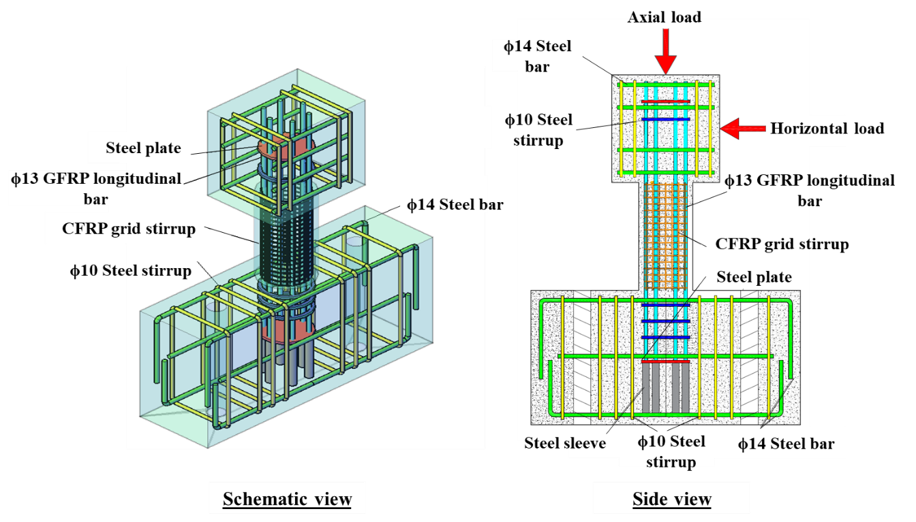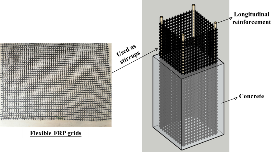 纤维增强聚合物(Fiber Reinforced Polymer,简称FRP)在土木工程中的应用已经十分广泛,并且由于其优异的力学性能和耐久性,逐渐成为传统建筑材料的重要补充。尽管FRP筋作为新型配筋材料具备优势和潜力,但后拉弯工艺导致筋材弯曲部分出现明显缺陷,既有FRP箍筋存在弯拉强度低、生产工艺复杂、现场加工困难等问题,已经严重制约了FRP筋增强混凝土结构技术的应用与推广。郑愚教授团队采用柔性碳纤维FRP(CFRP)网格材,通过现场裁剪与缠绕的方式形成网格状箍筋替代传统钢材箍筋/FRP箍筋,提出一种CFRP网格箍-GFRP纵筋混凝土组合柱结构体系。团队针对不同配箍率、箍筋类型和轴压比的短柱开展了受剪性能试验,分析了构件破坏模式、裂缝和应变发展、剪切荷载-水平位移等关系,阐明了新型组合柱的抗剪性能和失效机制。相关研究有利于进一步完善复材混凝土结构的理论研究体系,有效推动复材网格在新建混凝土结构中的合理应用,符合土木工程可持续性发展目标,具有重要的研究意义和社会经济效益。