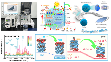 研究人员通过界面工程和缺陷工程策略构筑了氧空位介导的Ti3C2 MXene量子点修饰海胆状W18O49微球(OVs-TMQDs@W18O49),并将其制备成光催化复合膜材料。以OVs-TMQDs@W18O49为催化剂,在所设计的可见光驱动的穿透式膜反应器中,环磷酰胺和其他常见药物污染物(5-氟尿嘧啶、卡马西平等)的去除率和矿化率在60分钟内可分别达到99%和63%以上。实验结果和DFT理论计算分析表明,在OVs-TMQDs@W18O49界面上形成的肖特基结和适量氧缺陷可以优化光催化剂的电子结构,提高太阳能利用效率,防止光生载流子复合,同时能够实现更多的自由基参与到氧化降解反应中。