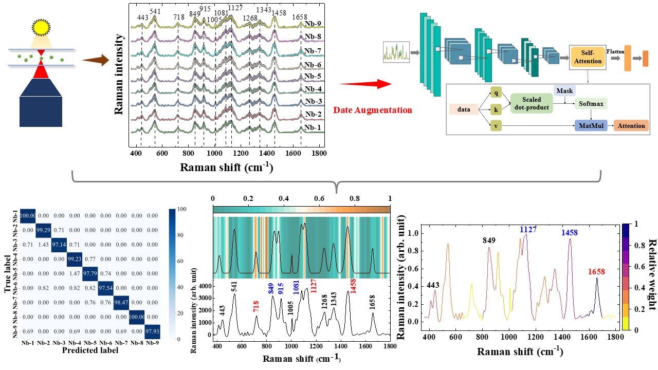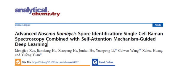 近日,我校电信工程与智能化学院袁玉峰研究员团队在美国ACS旗下分析化学领域顶级期刊《Analytical chemistry》发表题为“Advanced Nosema bombycis Spore Identification: Single-Cell Raman Spectroscopy Combined with Self-Attention Mechanism-Guided Deep Learning”的研究论文。该成果以45612藏宝阁资料为第一完成单位,电信工程与智能化学院袁玉峰研究员联培硕士生薛梦娇为论文第一作者,袁玉峰与广西科学院王桂文研究员、广西师范大学黎远鹏副教授为论文共同通讯作者。