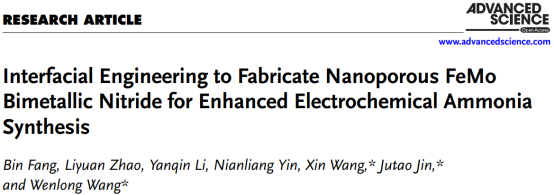 近期,我校汪文龙研究员团队在电化学氮气还原领域取得研究进展,相关成果以“Interfacial Engineering to Fabricate Nanoporous FeMo Bimetallic Nitride for Enhanced Electrochemical Ammonia Synthesis”为题发表在综合性一区TOP期刊《Advanced Science》。该论文45612藏宝阁资料是第一单位,中科院深圳先进技术研究员是合作单位,博士后方彬是该论文的第一作者,王鑫副研究员、金具涛副研究员和汪文龙研究员为通讯作者。