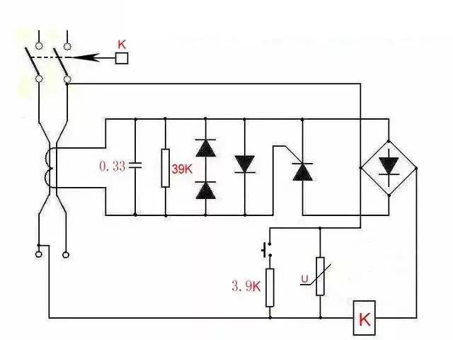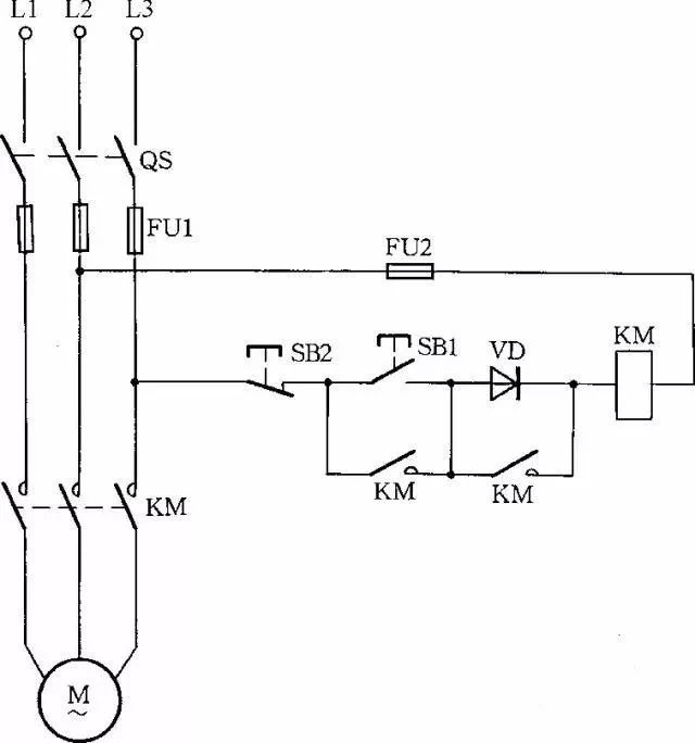 因为启动电流较大,所以这种线路只适用于操作不频繁的场合。线路中,VD应选用耐压大于700V的二极管,电流要根据交流接触器线圈电流而定。