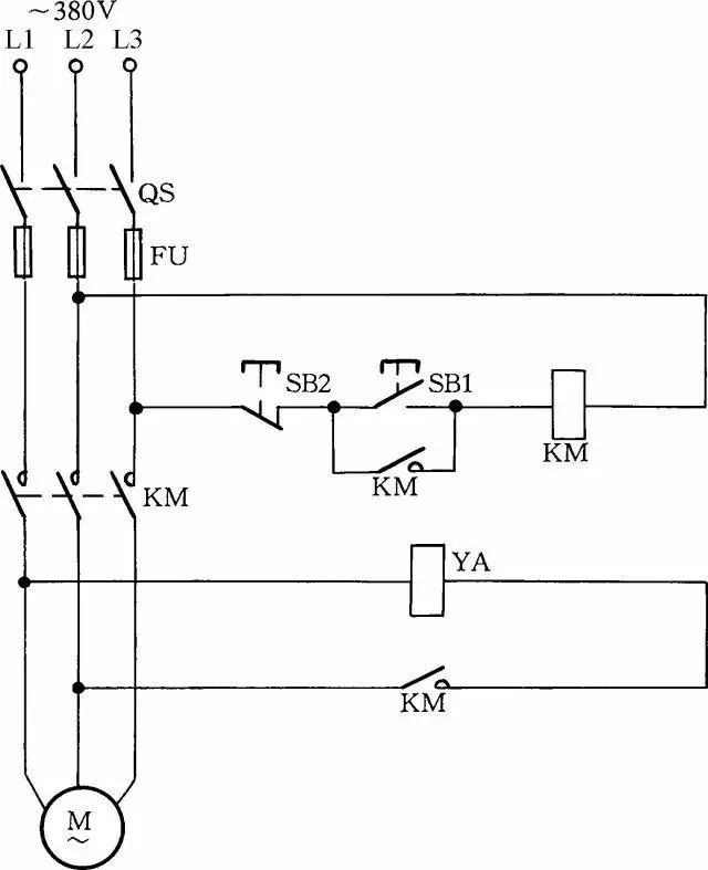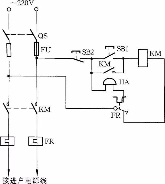 因此,这种线路只能在应急时采用,并在维修电动机时,应断开控制电动机的总电源开关QS,这一点应特别注意。