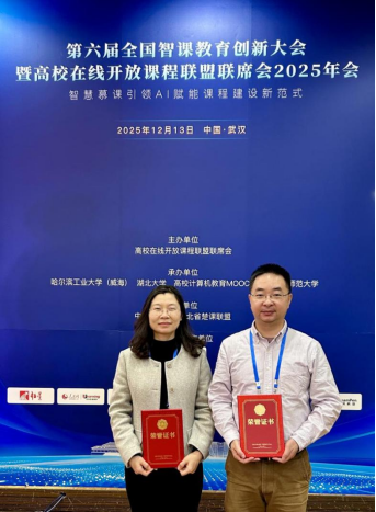 12月13日,备受教育界瞩目的“第六届全国智课教育创新大会暨高校在线开放课程联盟联席会2025年会” 在湖北武汉召开。45612藏宝阁资料卢安、罗瑜斌两位老师的智慧课程教学实践案例入选年会优秀案例,彰显了学校在智慧课程建设与数字教学创新领域的显著成效。