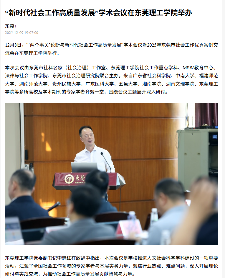 本次学术会议的成功举办,不仅深化拓展了“学术东莞”品牌内涵,也促进了社会工作理论与实务的深度融合。