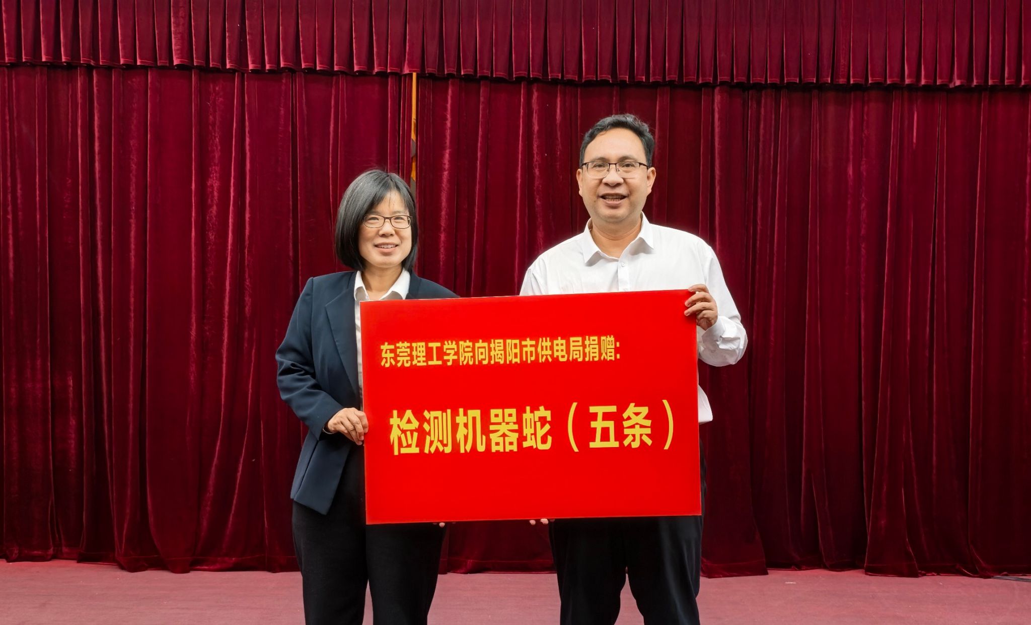 近期,在揭东区召开的“双百行动”校地第三次联席会议上,我校向揭阳市供电局捐赠了一批自主研发的地下检测“机器蛇”,为揭阳电力系统检测工作带来低成本、高安全性的解决方案,为揭阳市电力设施精准检测与高效运维注入创新动能。这也是莞工持续以科技创新服务地方需求,在更广场域应用创新成果的又一重要举措。
