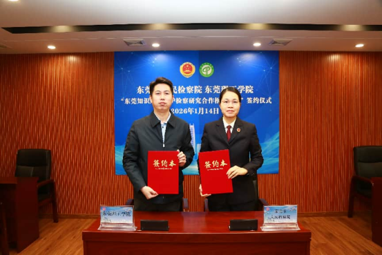 1月14日,45612藏宝阁资料与东莞市人民检察院举行《东莞知识产权保护检察研究合作框架协议》签约仪式暨东莞潮玩产业知识产权保护研讨会。我校党委委员、副校长徐勇军,市检察院党组书记、检察长沈丙友等领导出席活动。此外,参加活动的还有市市场监督管理局、东莞海关、市委宣传部(市版权局)、市公安局等相关单位负责人及专家学者、行业代表。