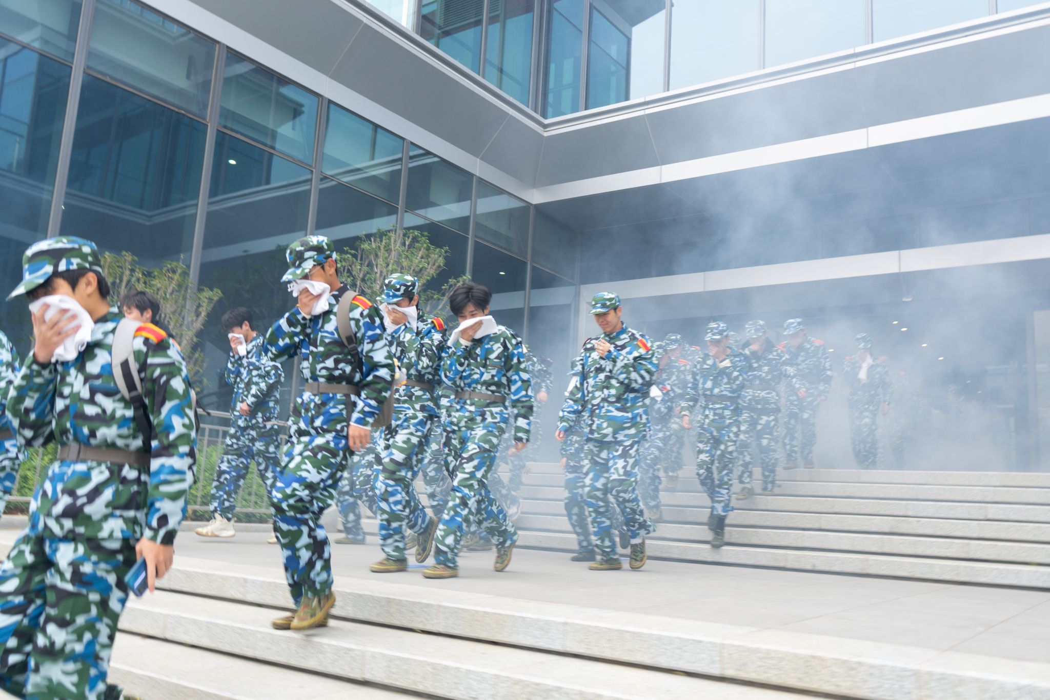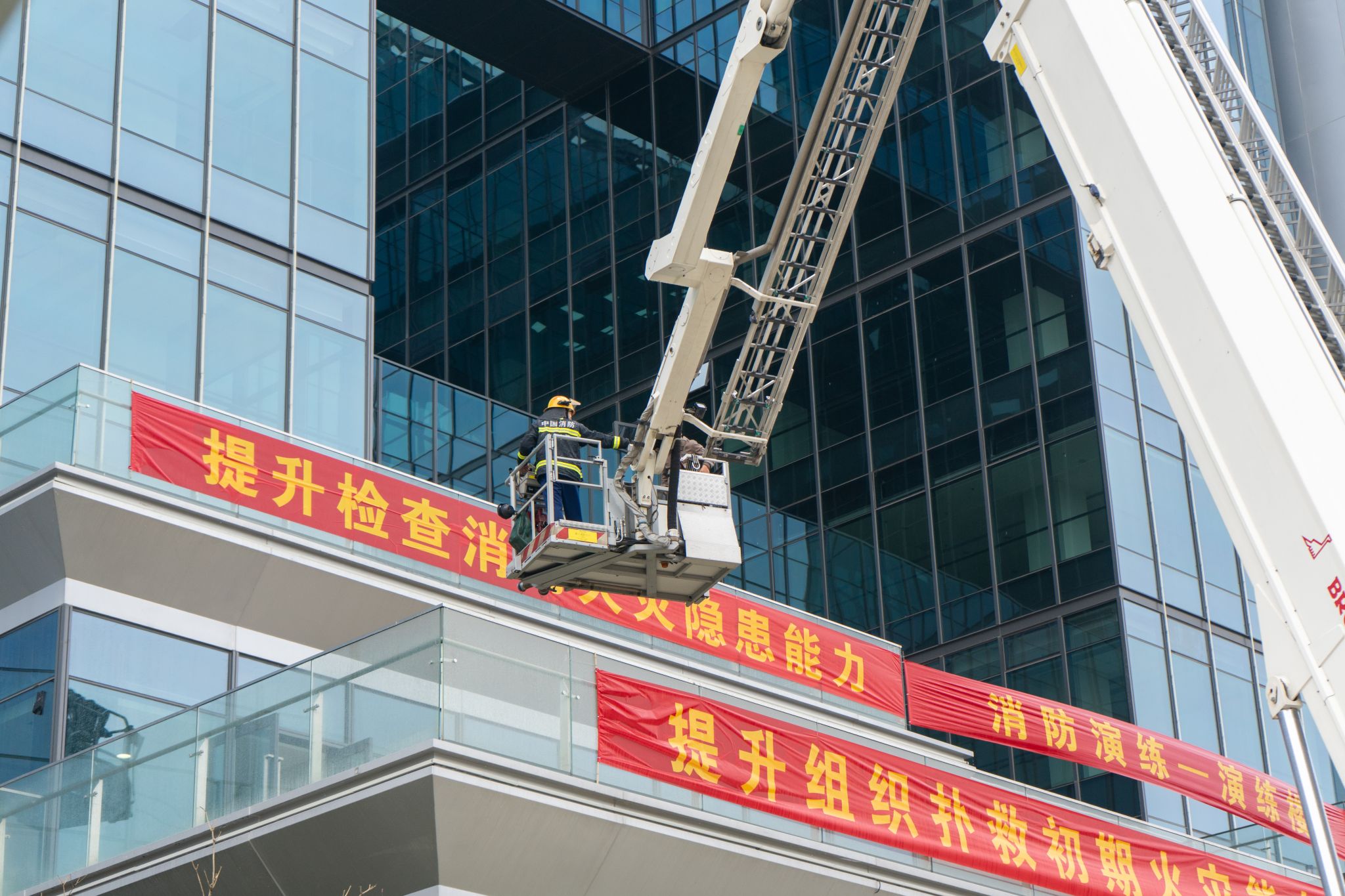 本次演练紧扣高层建筑火灾应急处置特点,以国际合作创新区1栋4楼实验室电器短路引发火情为模拟场景,全流程还原火灾警情响应、人员疏散逃生、初期火情扑救、专业救援处置等关键环节。下午3时,随着消防警铃即时响起,迅速启动应急机制,物业工作人员迅速引导楼内师生弯腰低姿、捂住口鼻,沿安全通道有序撤离至空旷广场集结。学校志愿消防队闻令而动,立即赶赴现场开展火情侦察与初期扑救;松山湖消防救援大队火速增援,通过云梯救援、高空射水控火等专业手段,成功搜救被困人员并彻底扑灭火情。整个演练紧张有序、衔接顺畅,达到了以练促学、以练强能的预期目标。