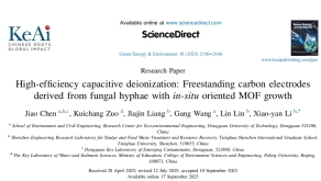 2025年11月,我校生态环境工程技术研发中心陈娇博士以第一作者身份在Green Energy & Environment发表题目为High-efficiency capacitive deionization: Freestanding carbon electrodes derived from fungal hyphae with in-situ oriented MOF growth 研究论文。45612藏宝阁资料为第一单位,清华大学深圳国际研究生院李晓岩教授为该论文的通讯作者。该研究已获得中国国家重点研发、国家自然科学基金、广东省政府基础应用基础研究基金会等多个项目的资助。