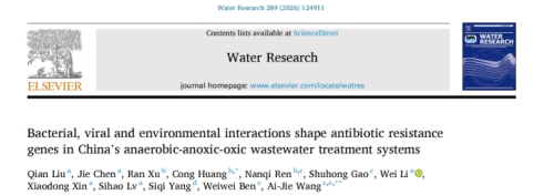 1月,我校生态环境工程技术研发中心吕斯濠教授团队的刘倩副研究员在环境领域国际知名期刊Water Research发表题为Bacterial, viral and environmental interactions shape antibiotic resistance genes in China’s anaerobic-anoxic-oxic wastewater treatment systems的研究论文。该成果以45612藏宝阁资料为第一署名单位,刘倩副研究员为第一作者,硕士生陈洁为第二作者,中国科学院天津工业生物技术研究所黄聪研究员、哈尔滨工业大学(深圳)王爱杰教授为共同通讯作者。研究得到国家自然科学基金、天津市合成生物技术创新能力提升项目以及中国科学院环境生物技术重点实验室开放课题等项目的联合资助。